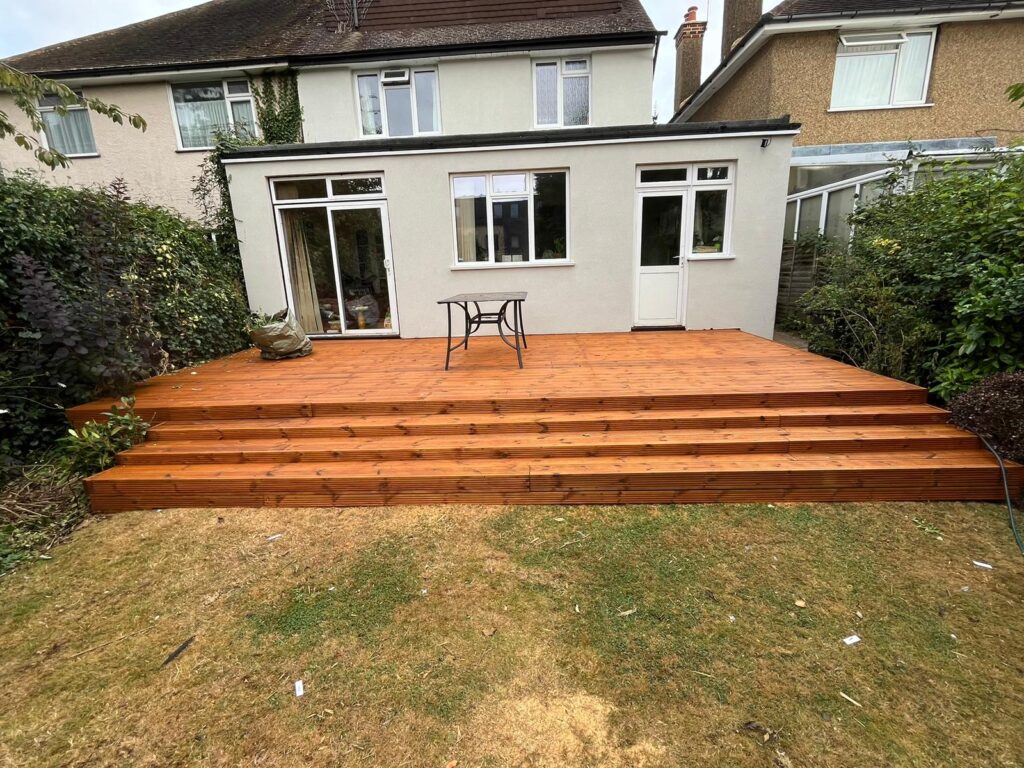 Composite Decking YellWe are delighted with our new garden transformation! The installation of this beautiful timber decking has completely changed how we use our outdoor space. The wide, multi-level steps create a stunning focal point while feeling incredibly sturdy and safe. The finish is flawless, and the natural wood tone perfectly complements our home. Professional, efficient, and high-quality workmanship throughout. We couldn't be happier with it!